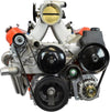 - Low mount alternator bracket and head mounted power steering bracket