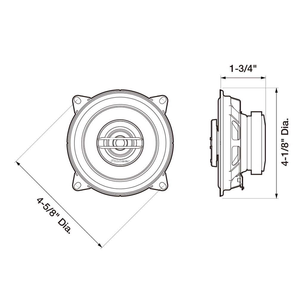 The TS-G1020S 4.0" two-way speaker with 210 W max power (30 W nominal) features Pioneer's extremely strong and lightweight Injected Molded Polypropylene (IMPPā¢) cone for improved sensitivity and reduced distortion. The Conex damper delivers higher power handling and deeper bass, while the 25 mm balanced dome tweeter reproduces highs with great performance and musicality. These speakers are designed with a shallow mounting depth for easy installation in a wide variety of vehicles.