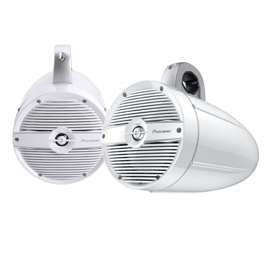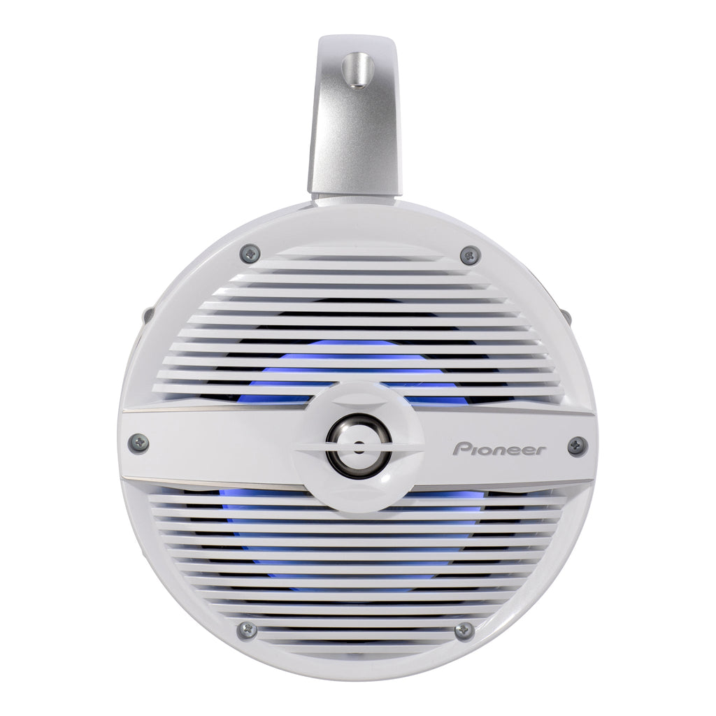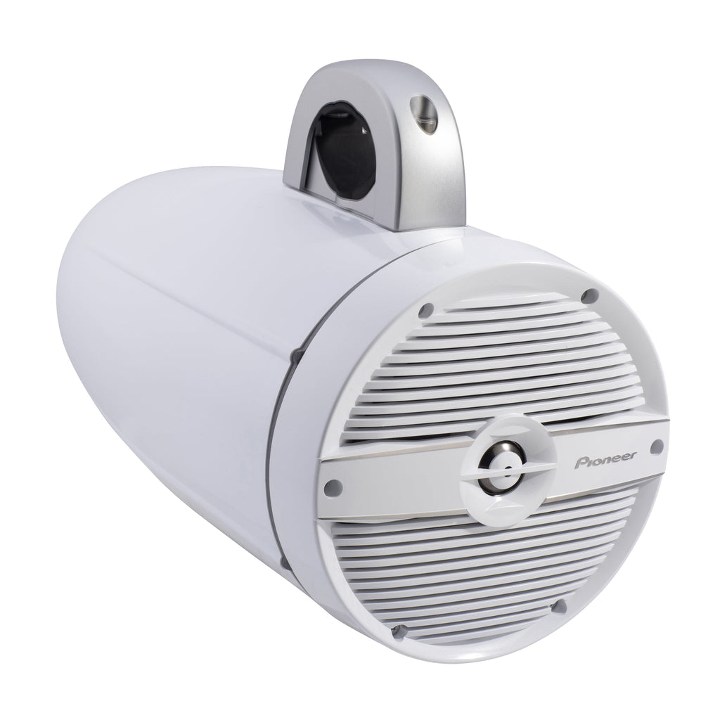 The TS-ME770TC 7.7" IPX7 Rated Tower Speaker with Built-In RGB LED Lighting features a white classic grille and a lightweight polyimide (PI) tweeter diaphragm. The uniquely shaped wave guide provides natural, clear vocals and wide speaker dispersion. These speakers come with classic grills in a white pearl finish that blend perfectly into the marine environment. To allow you to install your speakers at a variety of angles, they incorporate adjustments to perfectly align the grilles and backplates to your requirements.