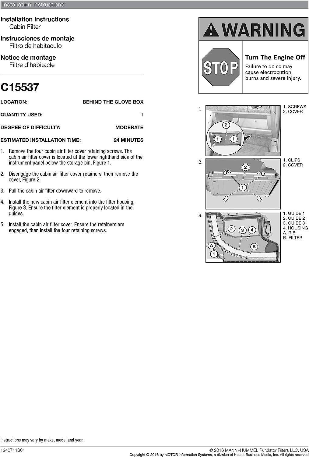 C15537 one Advanced Cabin Air Filter Compatible with Select Mini Vehicles
