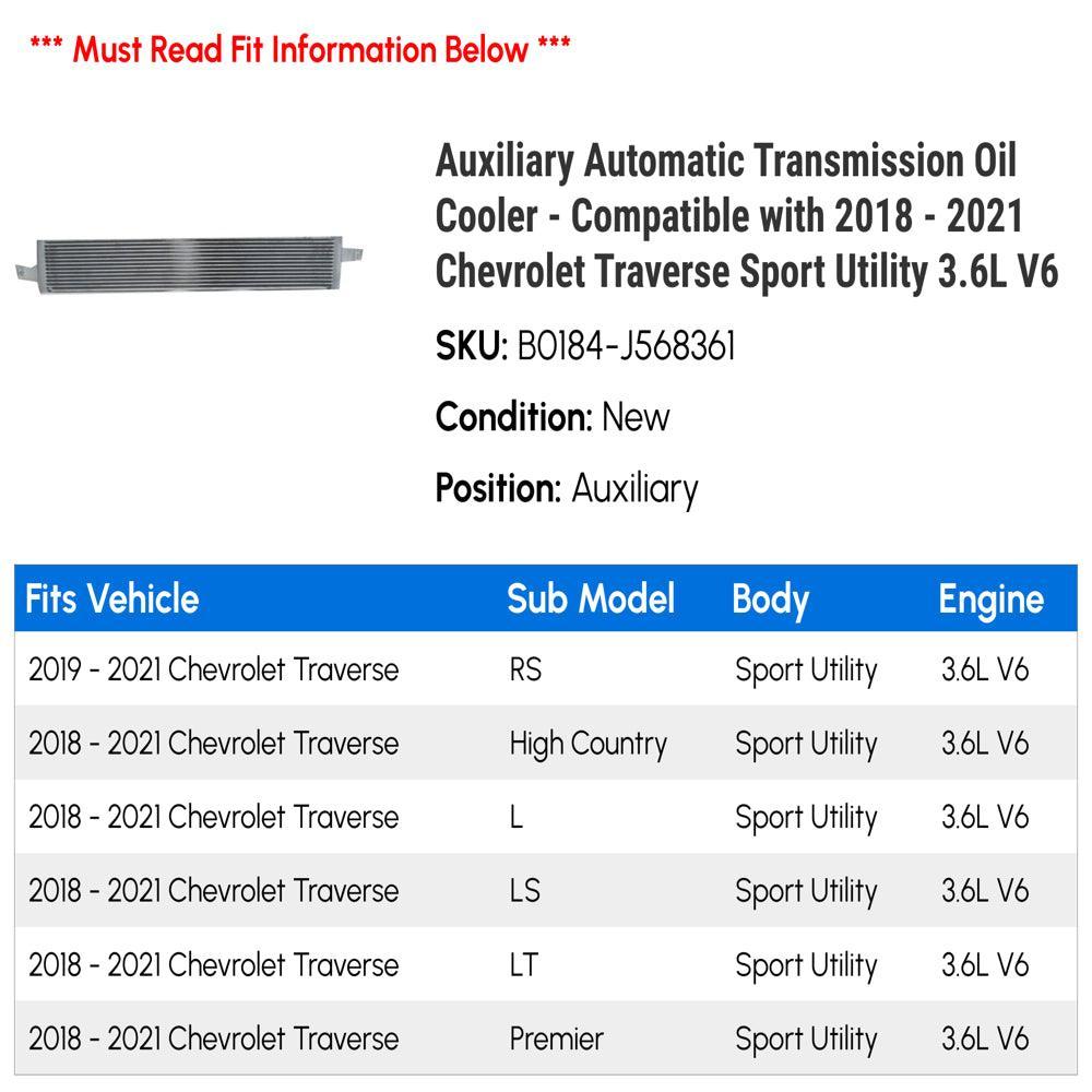 Auxiliary Automatic Transmission Oil Cooler - Compatible with 2018 - 2021 Chevy Traverse Sport Utility 3.6L V6 Position: Auxiliary Compatible With or...
