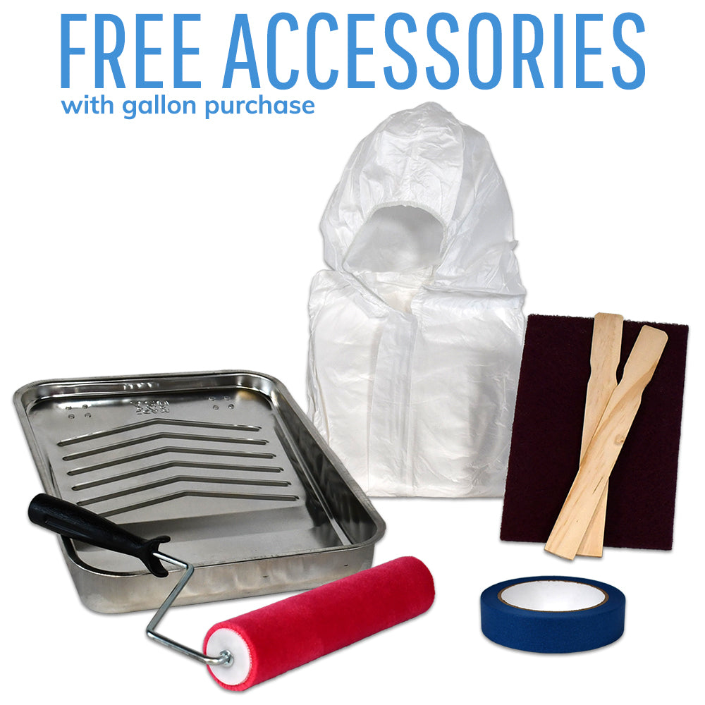 - Each Gallon order includes a free roller & metal tray kit, paint suit, 1 roll of painterās masking tape, an abrasive pad, and two 10ā³ wooden stir sticks.