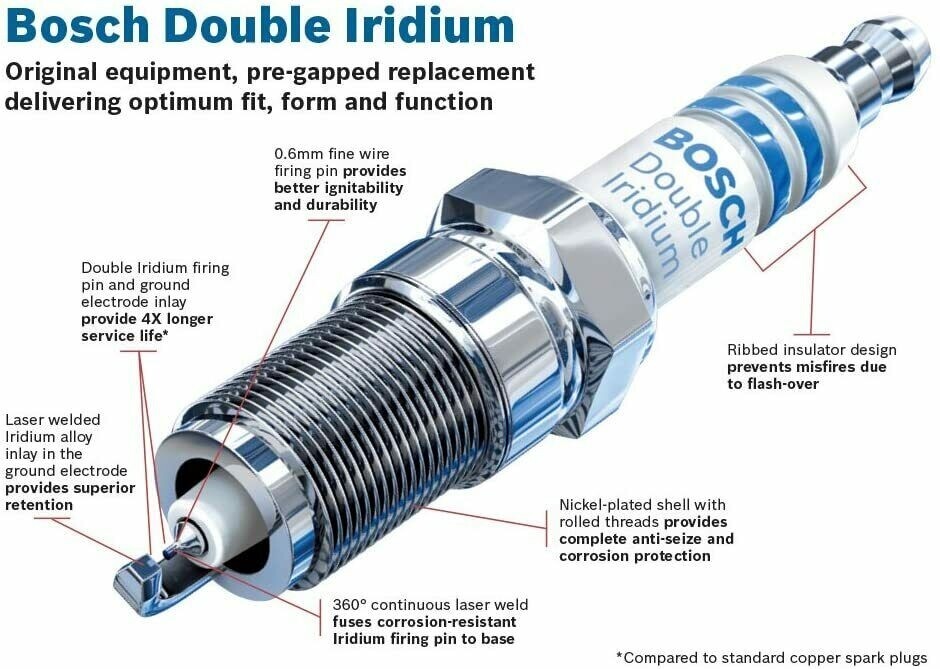 Set of 4 Bosch OE 96306 Fine Wire Double Iridium Spark Plugs Copper Performance