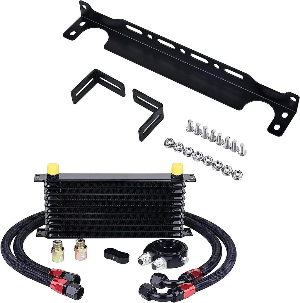 Bundle Included: 1pc 10 row oil cooler kit and 1pc 340mm oil cooler mounting bracket kit