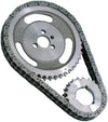 Premium Roller Timing Chains feature the highest quality chains. Milodon timing chains have huge .250 inch diameter non-split design rollers that actually roll into the sprocket, reducing power-robbing drag. Unlike most other timing chain sets, the Milodon chain almost eliminates chain stretch problems even in racing conditions. Cam and crank gears are CNC machined from high tensile strength, heat-treated material. Both timing chain gears use a wider tooth profile for superior strength and wear resistance.