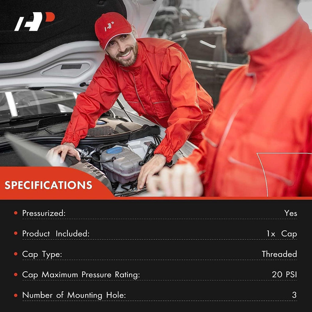 - [Specifications]: ā Pressurized: Yes ā”(Cap)Maximum Pressure Rating: 20PSI ā¢(Cap)Type: Spring Loaded Twist ā£Materials: (PA)Plastic ā¤Mounting Hole Quantity: 3 ā„Product Contents: (1) Cap
