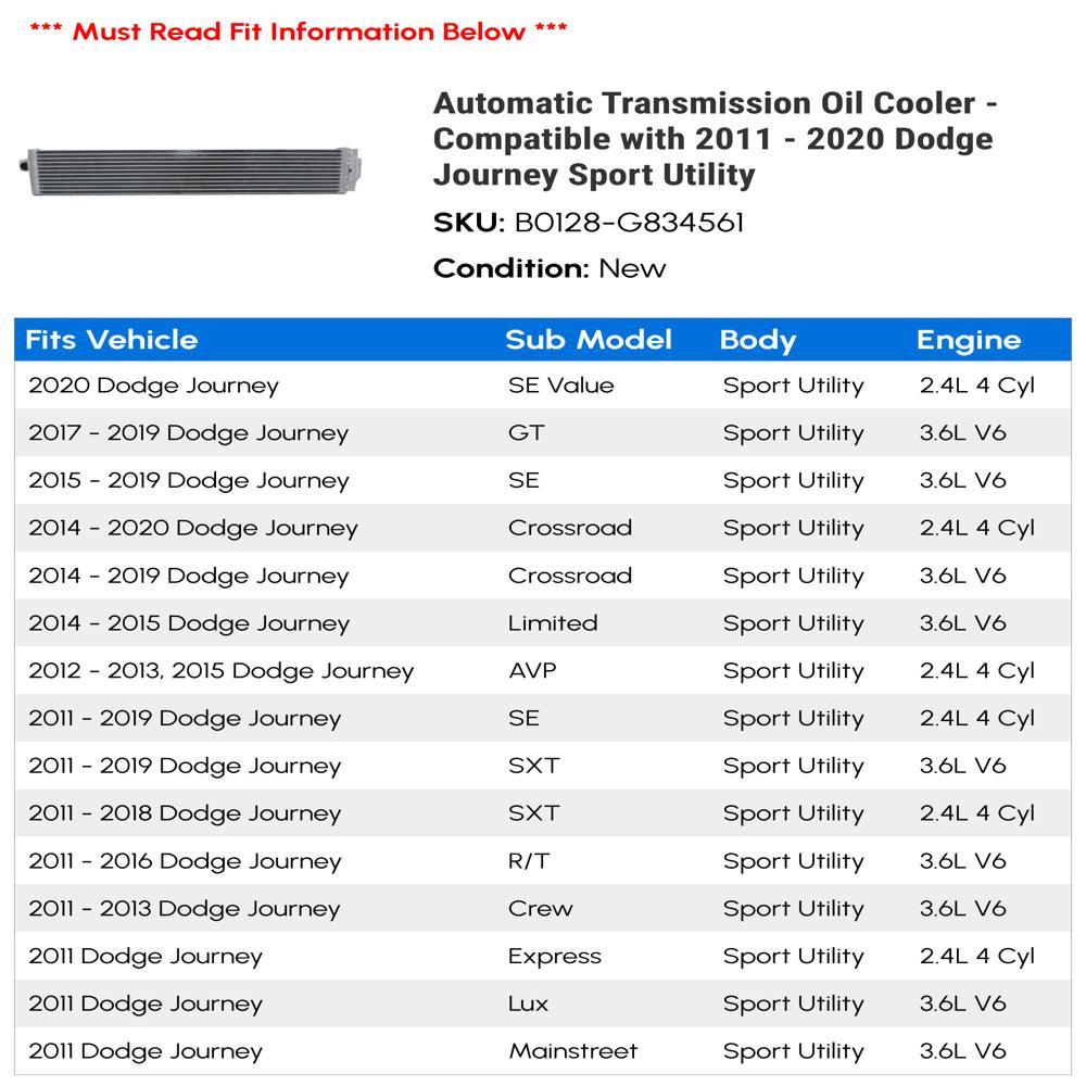 Automatic Transmission Oil Cooler - Compatible with 2011 - 2020 Dodge Journey Sport Utility Compatible With or Fits: - 2020 Dodge Journey...