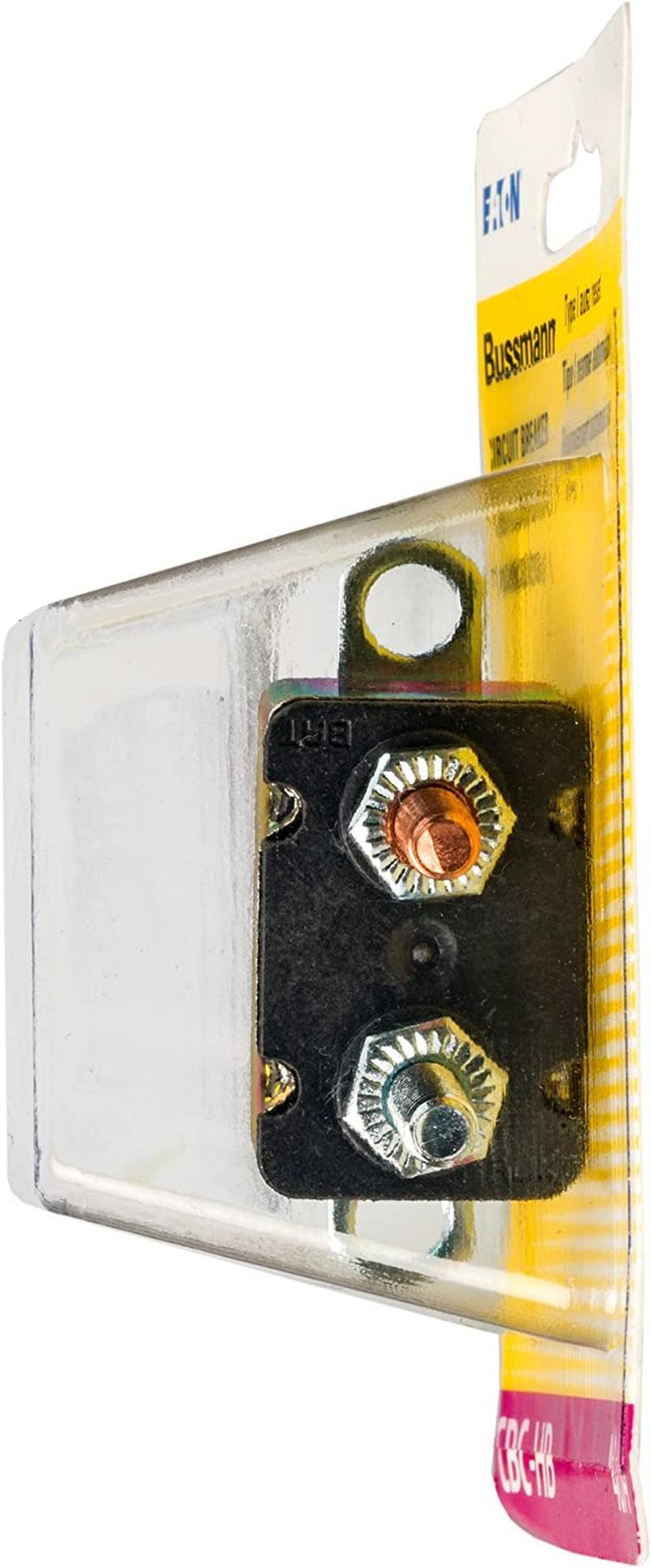 Bussmann Type-I 12 Volt DC Circuit Breaker comes with two 10-32 threaded studs and crosswise bracket. Bussmann stud-type circuit breakers feature patented fail-safe technology, and are available in various mounting configurations. Complies with SAE standard J553.