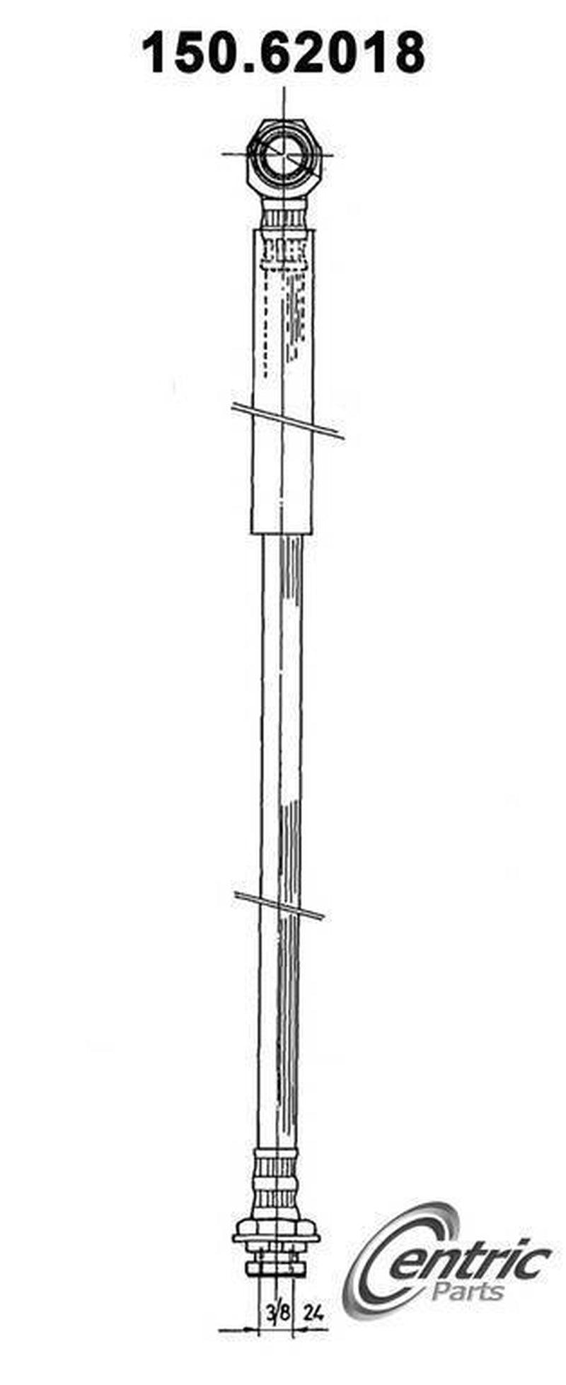 Specifications: Part Category: Brake Hydraulic Hose Brand: Centric Manufacturer Part Number: 150.62018 Vehicle Position: Front Placement on Vehicle: Front Label: Centric Premium Brake Hydraulic Hoses Product Type: Factory Replacement Type: Brake Hydraulic Hose Number of Pieces: 1 DOT Approved: Yes Color: Black Outer Sleeve Material: Epdm rubber Mounting Hardware Included: No Grommets Included: No Bracket Included: No Gasket Or Seal Included: Yes Bracket Quantity: 0 Shield Included: No End 1 Fitting Material: Metal End 1 Fitting Type: Banjo End 2 Fitting Material: Metal End 2 Fitting Type: Female Teflon Lined: No End 2 Flare Type: Inverted Overall Length: 11.614 Overall Length: 295.00 End 2 Thread Size: 3/8"-24 End 1 Thread Size: 11.0mm Banjo Bolt Part # [cntrc]: 117.99012 Banjo Bolt [cntrc]: Yes Clip Qty [cntrc]: 1 Clip [cntrc]: Yes Notes #1 [cntrc]: 1 rubber sleeve Washer Part # [cntrc]: 117.99011 Important Information: