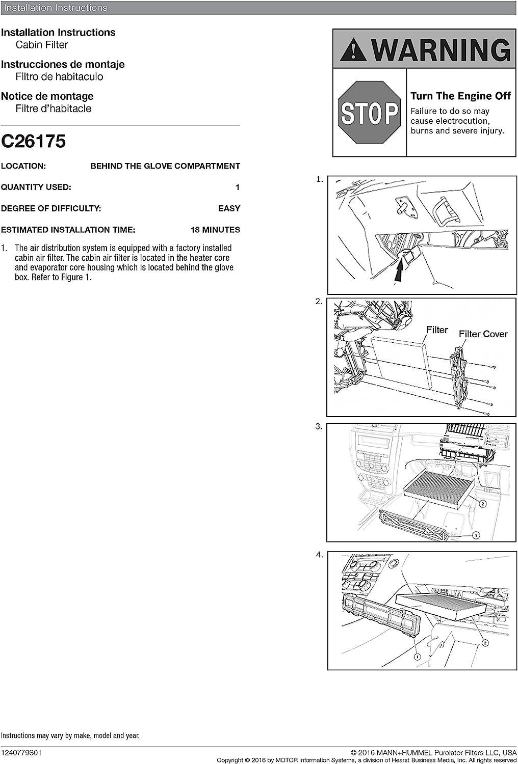 C26175 one Advanced Cabin Air Filter Compatible with Select Ford Vehicles