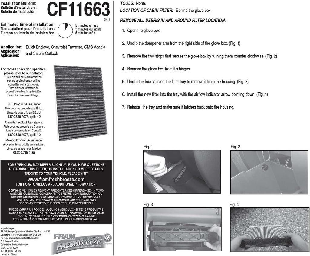 - EASY INSTALL: This cabin air filter is located behind the glove box and on average will only take 15 minutes to replace the old filter with a new filter. It is important to replace your cabin air filter periodically to help keep the air in your vehicle clean.