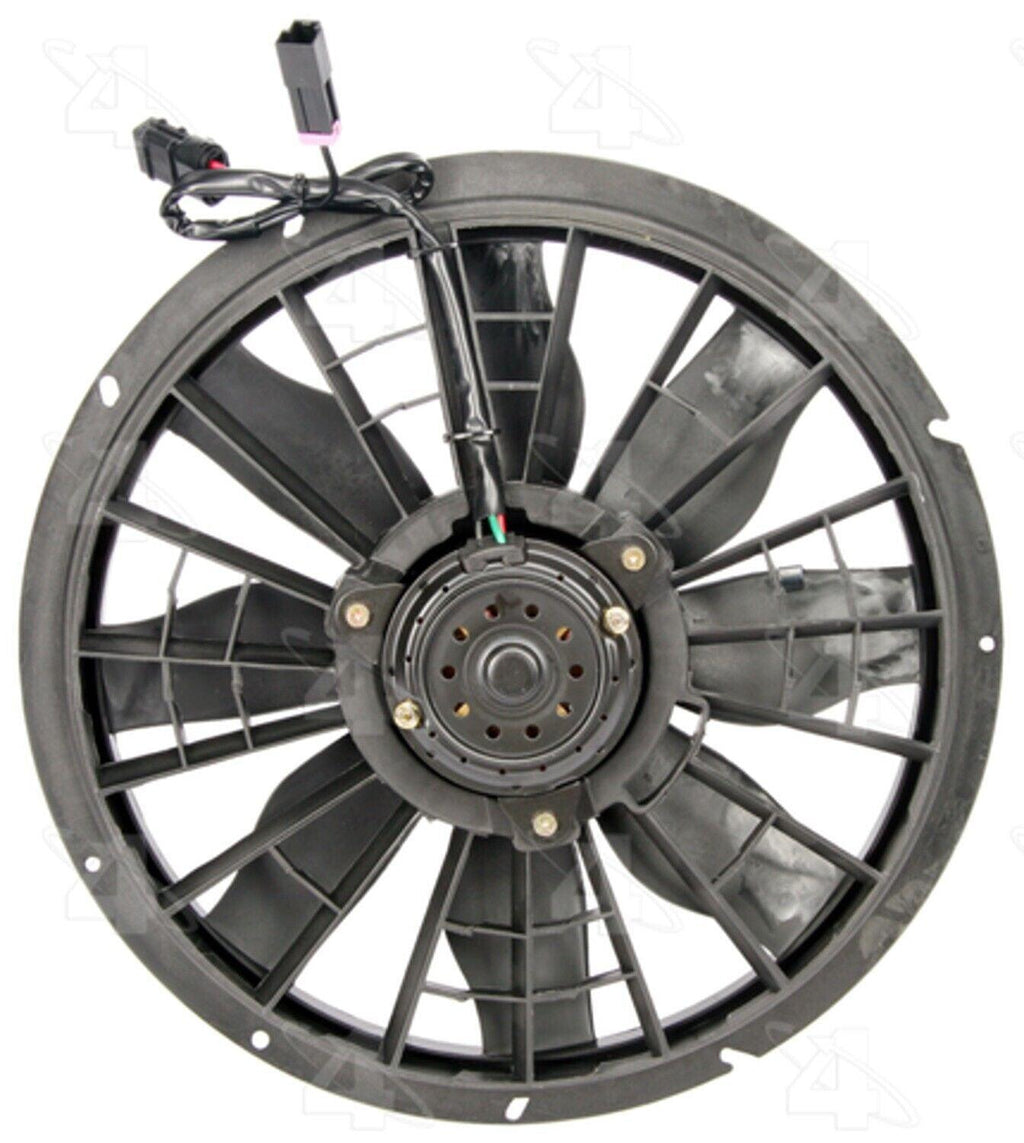 Specifications: Part Category: Engine Cooling Fan Assembly Brand: FS Manufacturer Part Number: 75430 Label: Radiator Fan Assy. Product Type: Factory Replacement Type: Engine Cooling Fan Assembly Number of Pieces: 1 Material: Plastic / metal Voltage: 12 Housing Finish: Black Hub Bolt Hole Quantity: Oe mount Fan Clutch Mounted: Fan clutch not mounted within the assembly. Fan Quantity: 1 Shroud Included: Included Shroud Material: Plastic Terminal Quantity: 2 Connector Gender: Female Terminal Gender: Female Blade Material: Plastic Blade Type: Rigid Electrical Or Mechanical: Electrical Fan 1 Blade Quantity: 8 Connector Qty: 2 Connector Shape: Rectangular Connector Type: 2 wire lead w/ connector Description: Cooling fan assemblies Height IN: 22.000 Motor Type A: Radiator fan assembly Mount Location: Radiator fan Mount Type: Oe mount Mounting Hardware?: Not included O.E. Replacement?: Yes Package Depth IN: 17.875 Package Depth MM: 454.025 Package Height IN: 4.750 Package Height MM: 120.650 Package Length IN: 17.500 Interchange Part Number: 11175430 1581455 19193425 2811825 409735 620883 620925 75430 Replaces Part Numbers: 9141249 9479929 A29464 CF46001 FA70412 Brand Label: Radiator Fan Assy. Important Information: