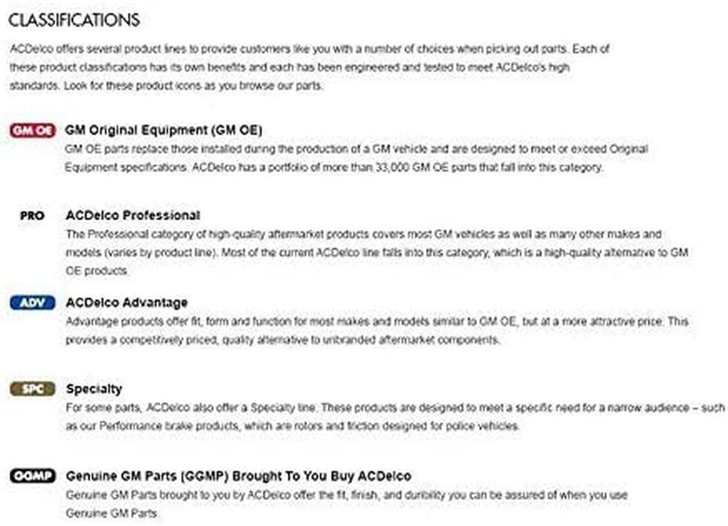 - Manufactured to GM OE specification for fit, form, and function