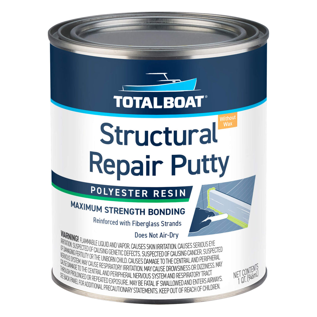 TotalBoat Polyester Structural Marine Repair Putty is a tough, resilient resin mixed with long strand milled glass fibers to provide resilience, maximum impact resistance and elasticity so it wonāt crack as it ages. Itās ideal for marine applications where high-strength structural bonds are critical, including: