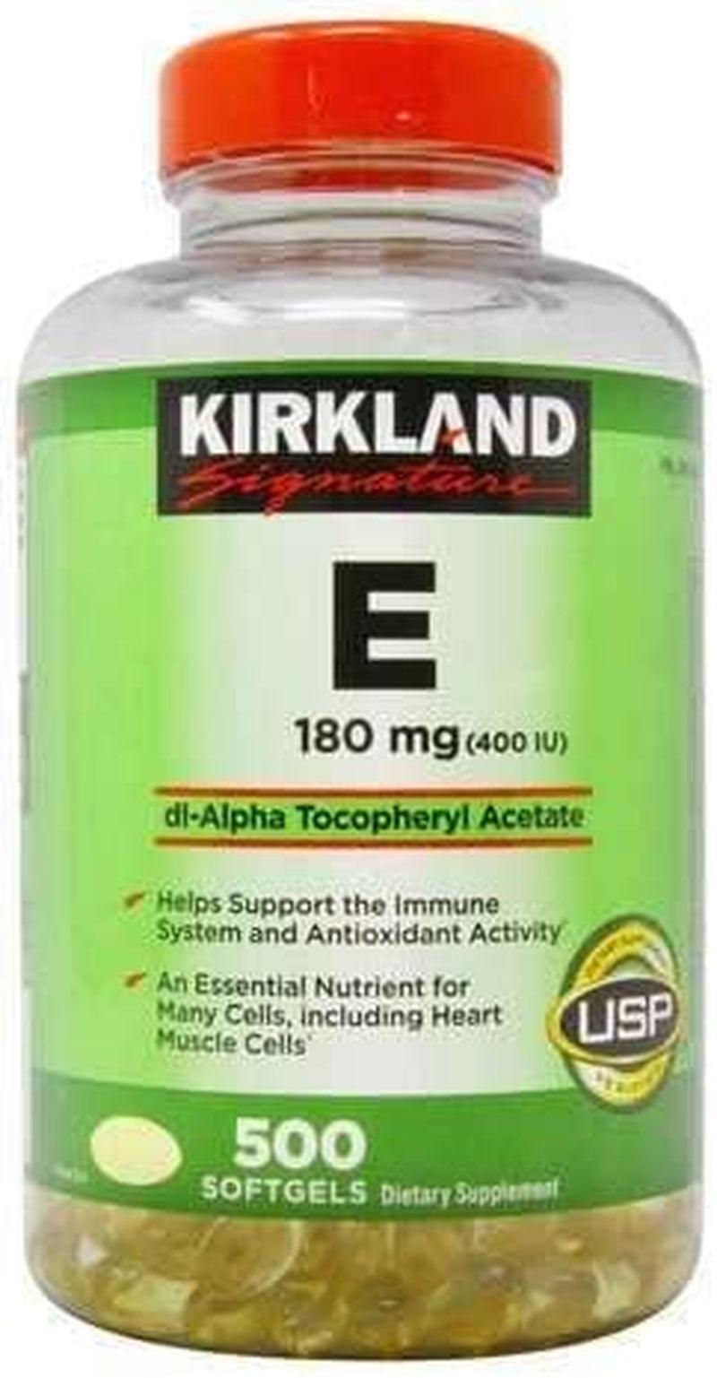Vitamin E naturally contributes to cardiovascular health by helping to protect LDL cholesterol from oxidation which may cause cellular damage. Every Kirkland Signature product is guaranteed to meet or exceed the quality standards of the leading national brands. Directions: Suggested Use: Adults: Take one softgel daily, with a full glass of water. Take consistently each day for best results. Ingredients: dl-Alpha Tocopheryl Acetate, Gelatin, Glycerin, and may contain Vegetable Oil. Warnings: Keep out of the reach of children. Tamper evident seal under cap. Do not use if printed seal is broken or missing. Storage: Store at room temperature, tightly closed. Avoid excessive heat.